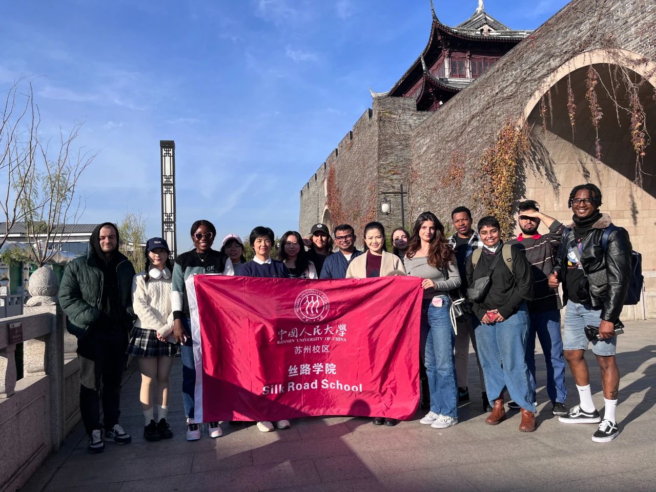 Professor Jiang Xiaoli, Deputy Dean ofSRS, introducedto the studentsthat the Suzhou city wall was built in 514 B.C.E., between Spring and Autumn. Xiangmen, also known as “craftsman gate” or“general gate”, was named after a sword maker who was ordered to set up a furnace to craft swords. Xiangmen is located in the east of Suzhou, and it is an important symbol that contrasts the style of the ancient city with the modern one.
