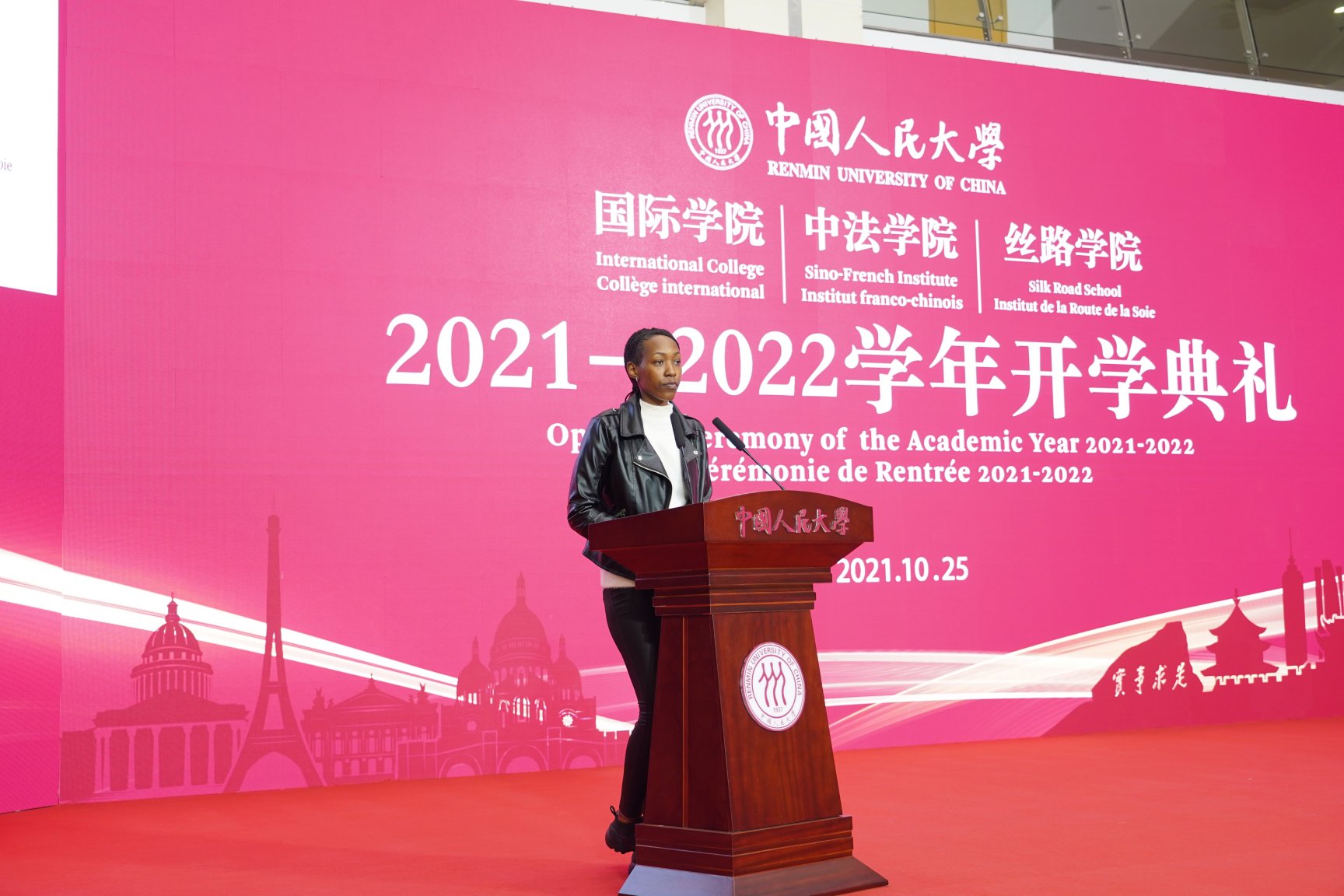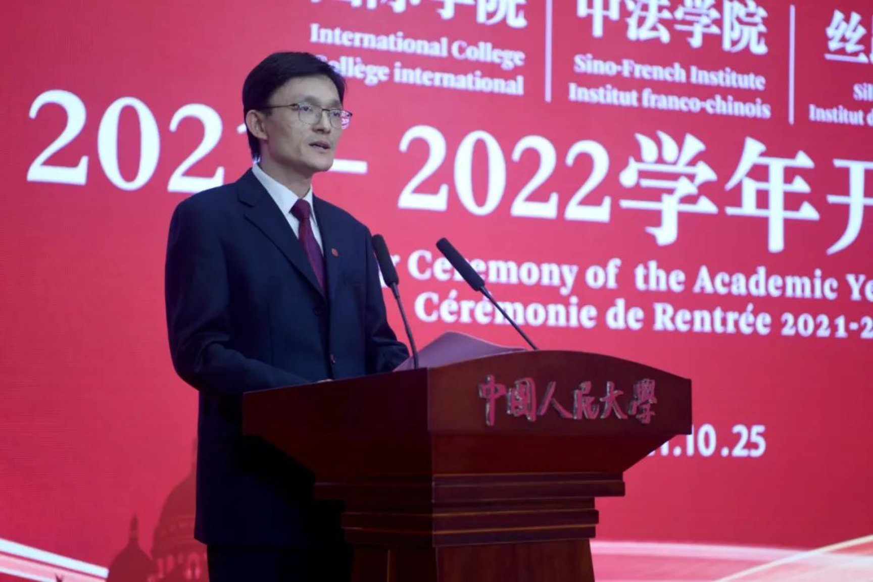 On the morning of October 25, 2021, the opening ceremony of the 2021--2022 academic year of the Silk Road School, Sino-French Institute and International College of Renmin University of China (RUC) was held successfu in Kaitai Building, Suzhou Campus. Full of longing and expectation, the freshmen of grade 2021 gathered in Suzhou Campus of RUC to embark on a new journey of life with a youthful attitude of struggle.