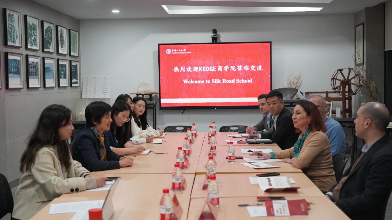 On the afternoon of November 23rd, Ms. Elisabetta Magnaghi, Vice President of KEDGE Business School, accompanied by Professor Jean-François Vergnaud, representative of Sino-French Institute, visited the Silk Road School(SRS). Professor Jiang Xiaoli, Deputy Dean of SRS, welcomed them and held a meeting at the students activity room.