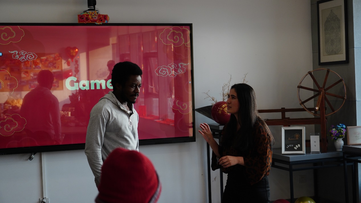 In the part of the game Chinese words-passing, the students' efforts to learn Chinese pronunciation, which made everyone onsite laugh, and they received cheers and applause after successfully passing the sentence. Both players and audience have gained a lot of happiness with laughter filled the room.