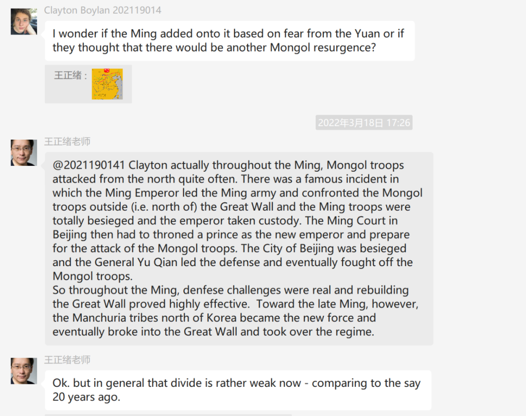 来自俄罗斯的叶萱表示:“Professor Wang is a talented educator, his class was something to look forward to. In the limited time, our class formed a deep understanding of Chinese politics. The most important part of each lecture was Q&A section, when Professor answered many questions regarding the current political situation in China and openly shared his opinion on the subject. A wide range of suggested reading materials further broadened our research horizons and improved our ability to digest a large amount of information related to contemporary Chinese studies. Professor Wang's teaching style is unique and quite personal, and I believe my classmates will agree that we felt the connection and enjoyed every class to the last minute.”