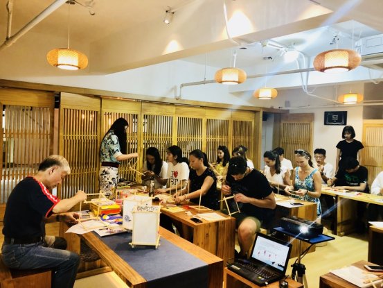 看!他们有的认真写着方正的汉字,有的一笔一笔勾勒梅花、熊猫等图案,还有的请庾老师亲自作画,展现出对中国传统文化的浓厚兴趣。