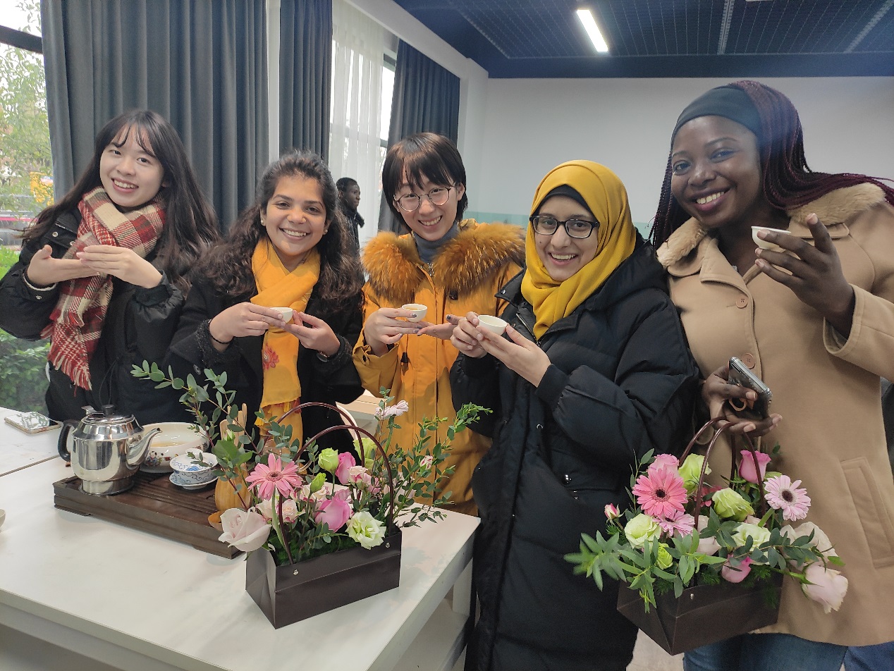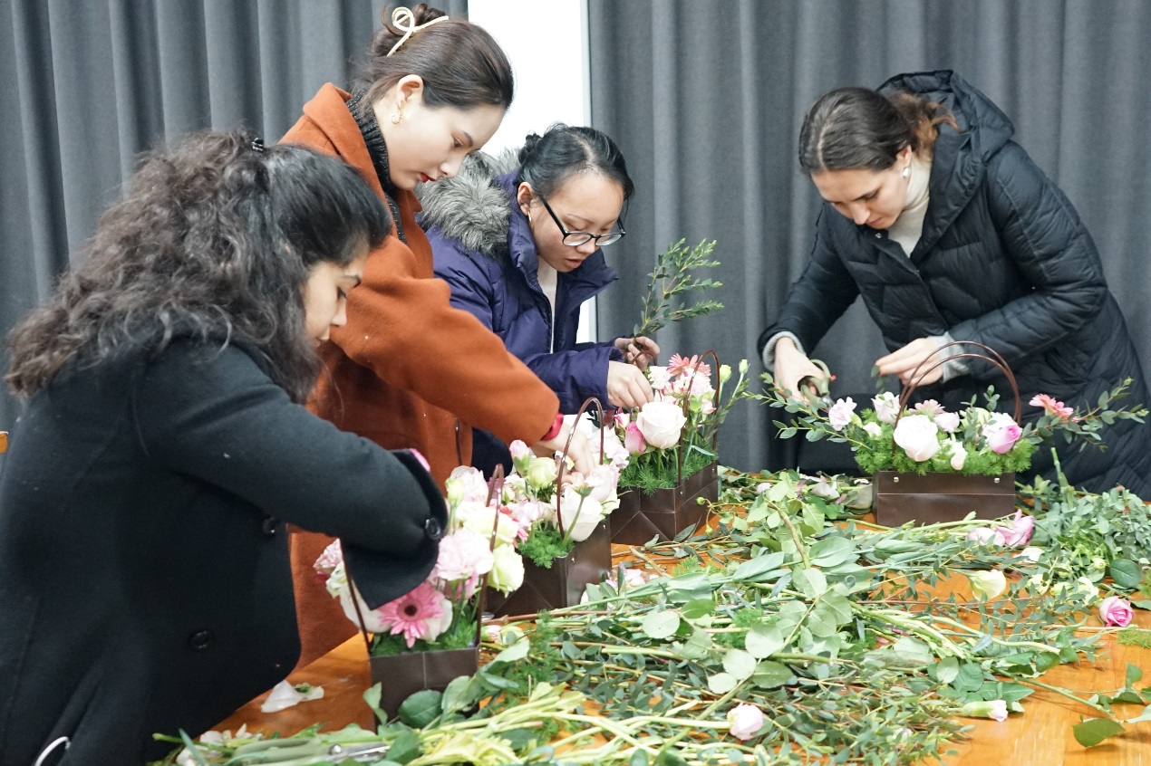 体验“花艺•茶道”课程。来自中国、巴基斯坦、俄罗斯等国家和地区的2019级、2020级学生参加本次活动。