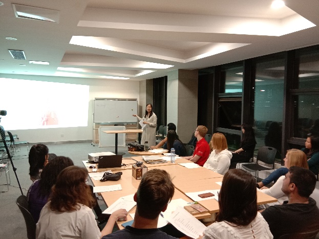 学了生词语言点后,老师们结合学习内容与留学生玩起了“谁是卧底”的游戏。这个游戏对他们来说不算陌生,但是在游戏中描述汉语词汇是他们的第一次尝试。“水”和“牛奶”、“听歌”和“唱歌”、“电脑”和“电视”等一组组相近的汉语词汇没有难倒他们,活动室内气氛非常活跃,几轮游戏结束后,学生仍意犹未尽。