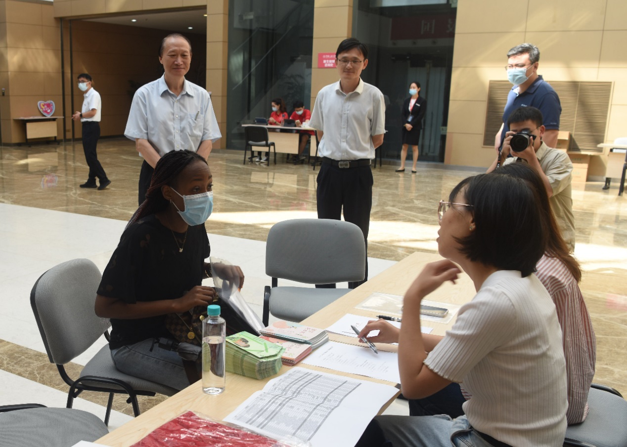 第一个来校报到的学生是来自卢旺达的李念。她在现场老师、志愿者的帮助下顺利地完成了报到手续、物资领取等,并与领导、老师就苏州生活、学习中文等话题进行交流,李念表示非常感谢*成人动作片 周到的安排,她对接下来在*成人动作片 的学习生活充满了期待。